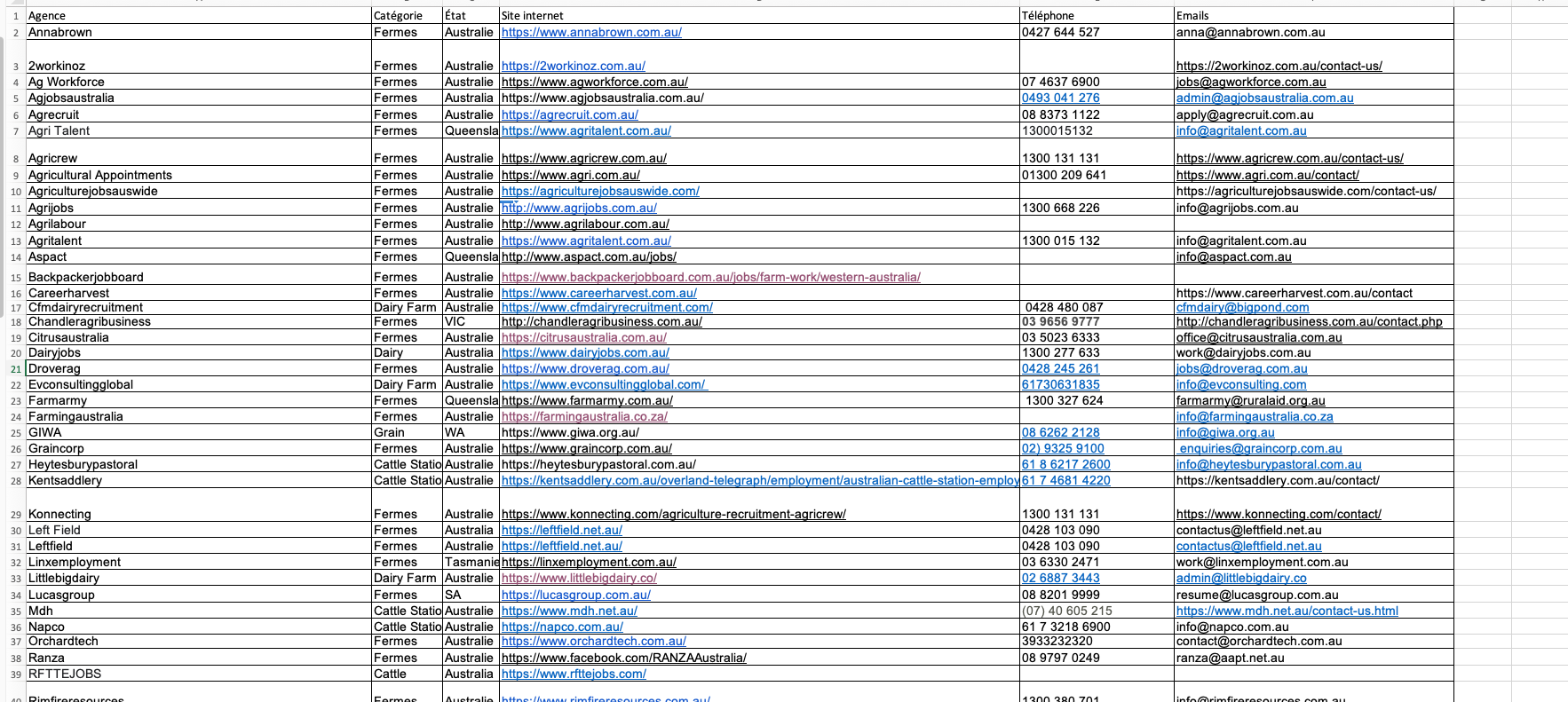 Augmente tes chances de valider tes 88 jours : Beaucoup de fermes en Australie exigent un certain nombre de jours de travail pour le visa. Avec cette liste, tu vises directement celles qui recrutent régulièrement.